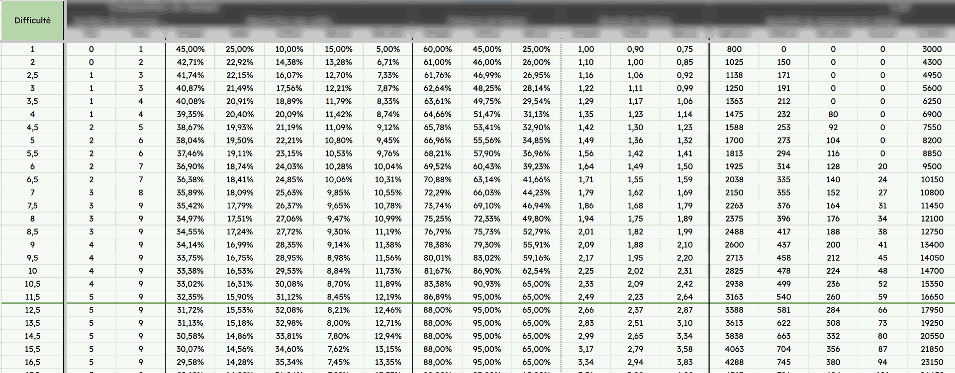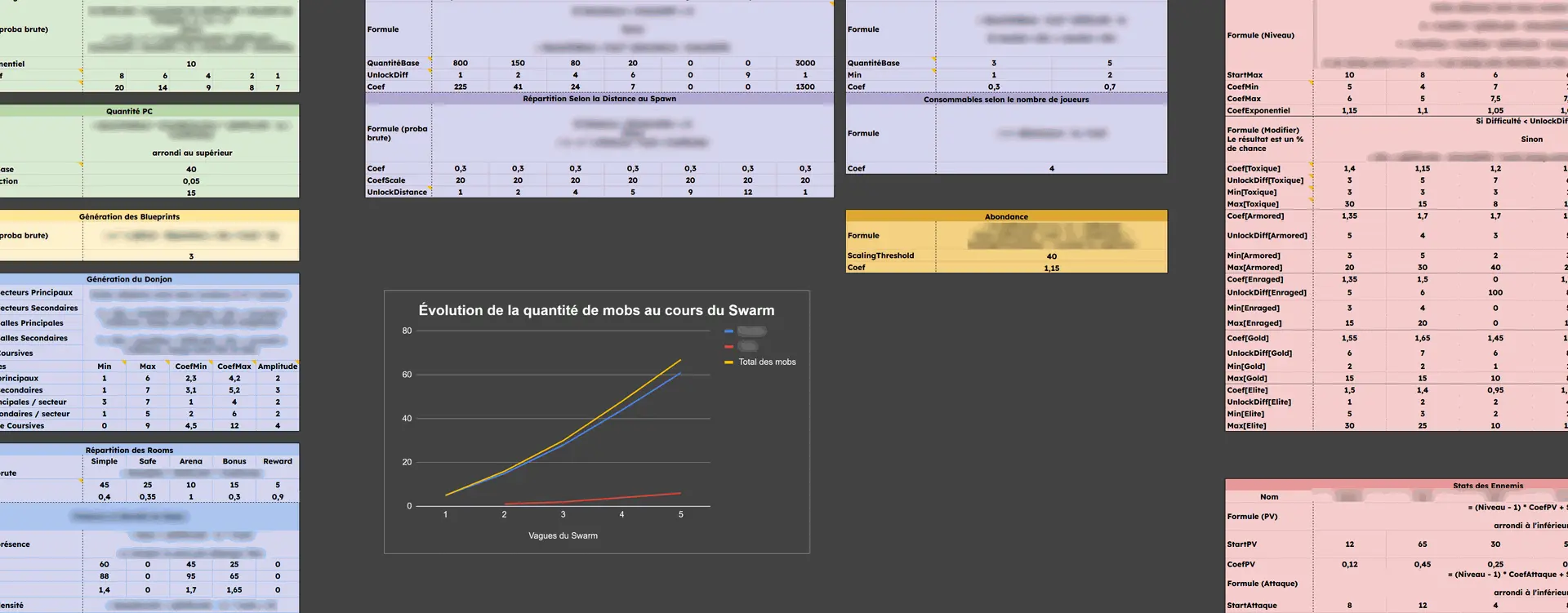 Enfin, la plus grande partie de mon temps de travail a été consacrée à l'équilibrage sur GSheet. La majorité du projet reposant sur des formules mathématiques, il était nécessaire de les travailler le mieux possible.